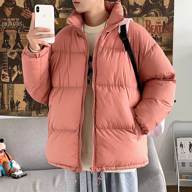 棉服2021冬季新款男女同款纯色加绒加厚港风潮流宽松立领情侣