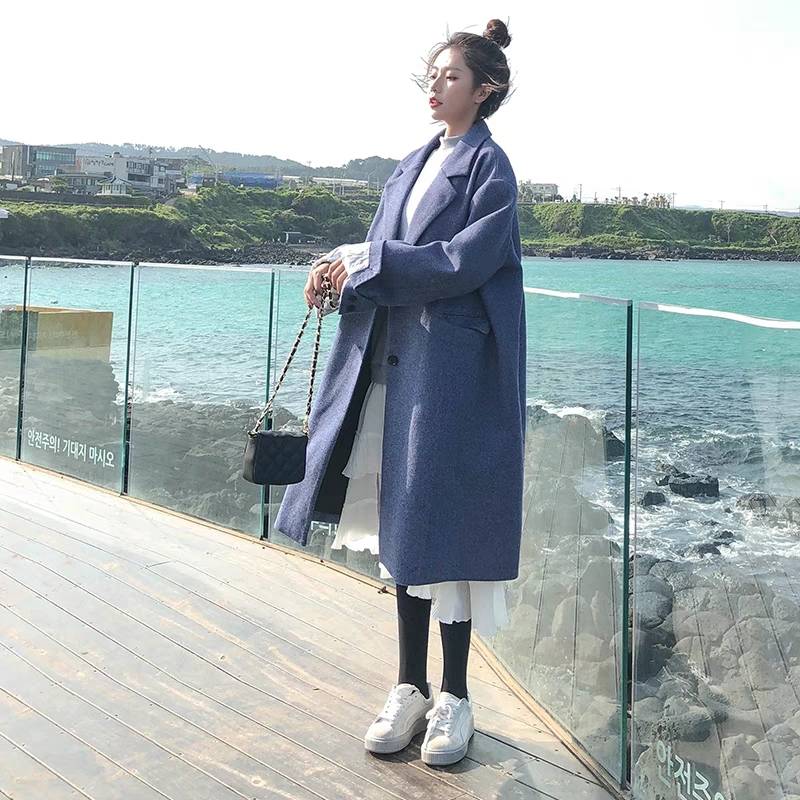 2019新款毛呢外套女装中长款小个子双面呢羊毛绒大衣腰带显瘦