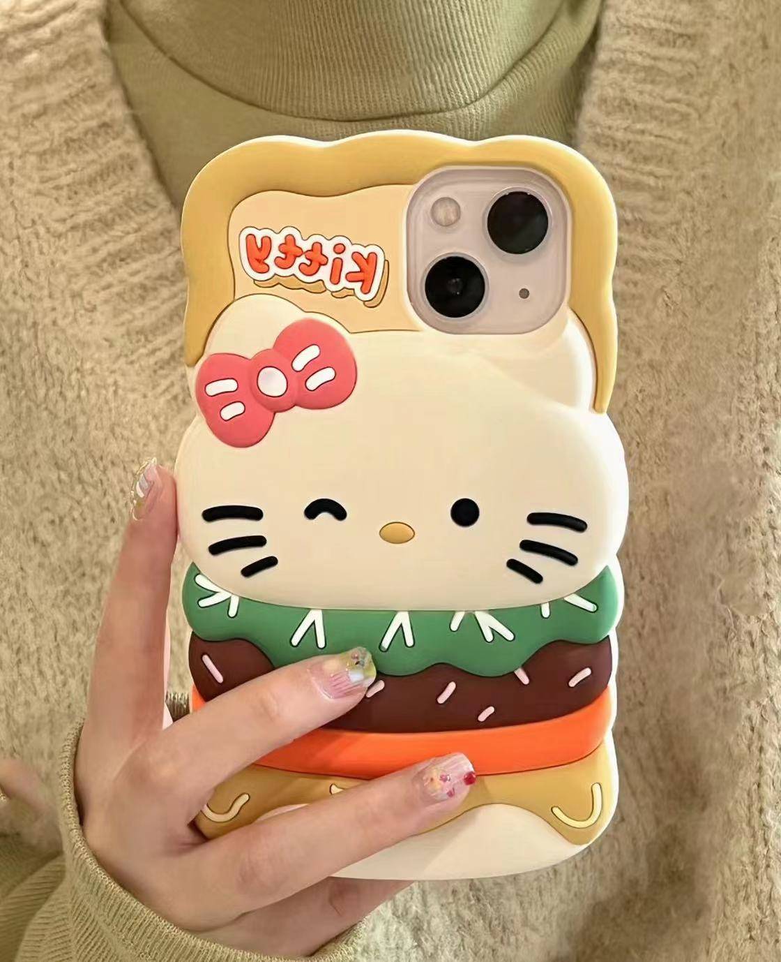 可爱立体Hellokitty猫汉堡包硅胶iphone15/14防摔手机壳女款