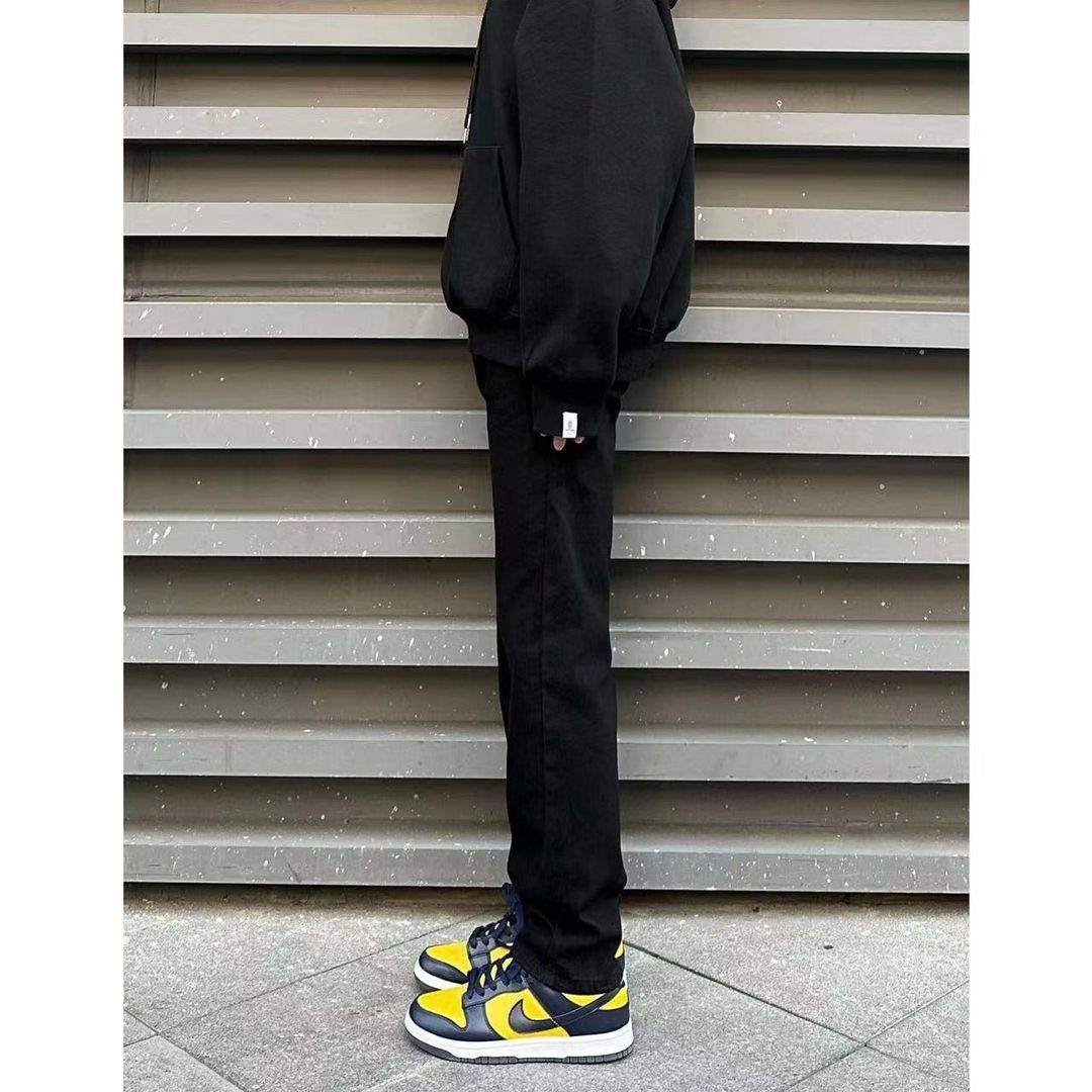 阿仕顿美式Cleanfit高街修身显高显瘦弹力百搭纯黑直筒牛仔裤同款