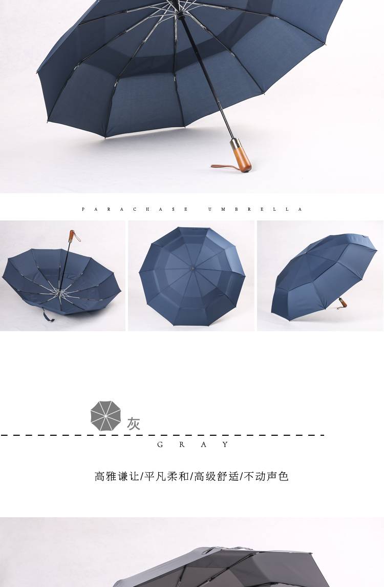 日系双层114CM简约加大防风超泼水铝骨双人全自动三折叠男晴雨伞
