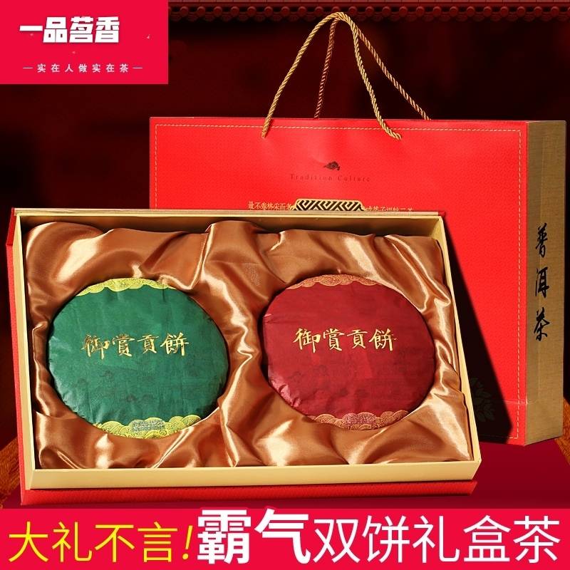 一品茗香普洱生熟双饼礼盒茶500g普洱茶叶礼盒装中秋节送长辈礼品