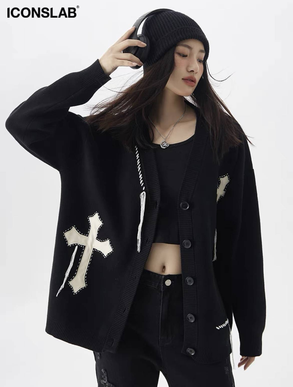 【张云雷同款】iconslab V领针织开衫十字提花毛衣男女同款潮春季