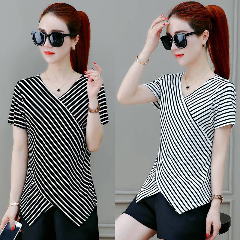 大码女胖mm2018夏新款韩版短袖条纹t恤 88.00 已售:0件