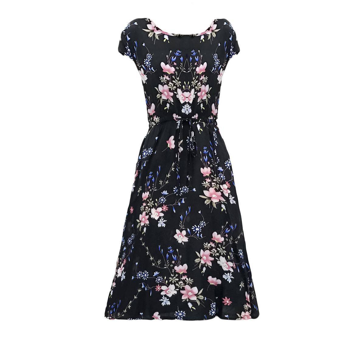 2018新款显瘦气质棉绸连衣裙女夏中长款收腰修身人造棉短袖碎花裙 68.00 已售:0件