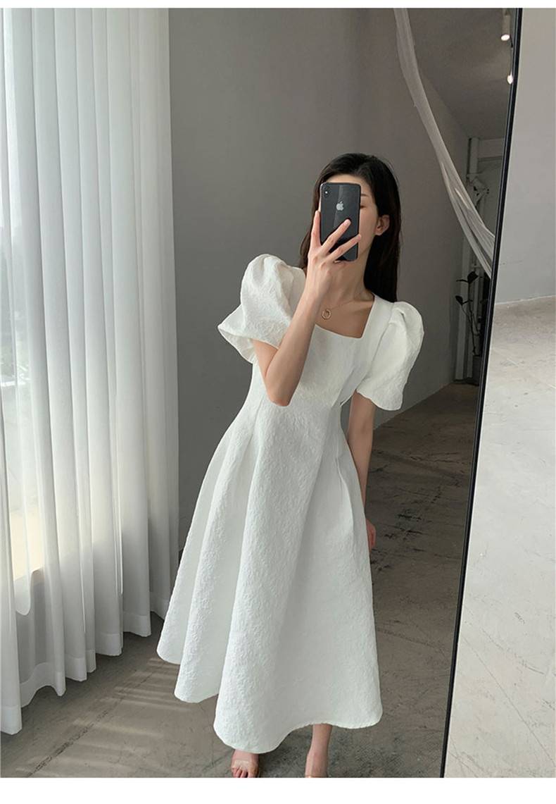 欧货时尚洋气娃娃领连衣裙女2021年夏季新款 气质收腰泡泡袖a字裙