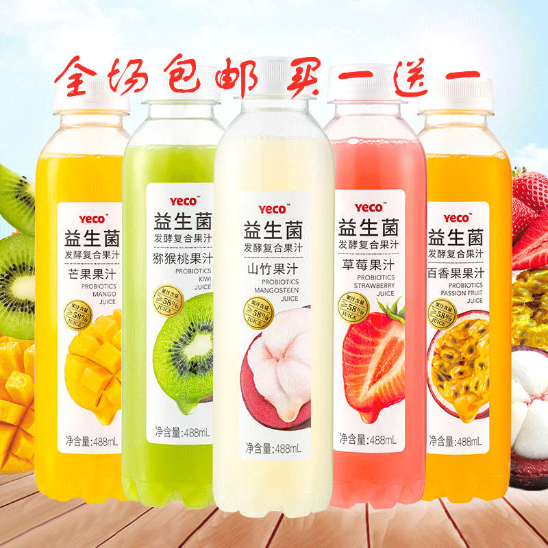 488ml*15瓶yeco益生菌发酵复合果汁饮料5种口味瓶装饮料