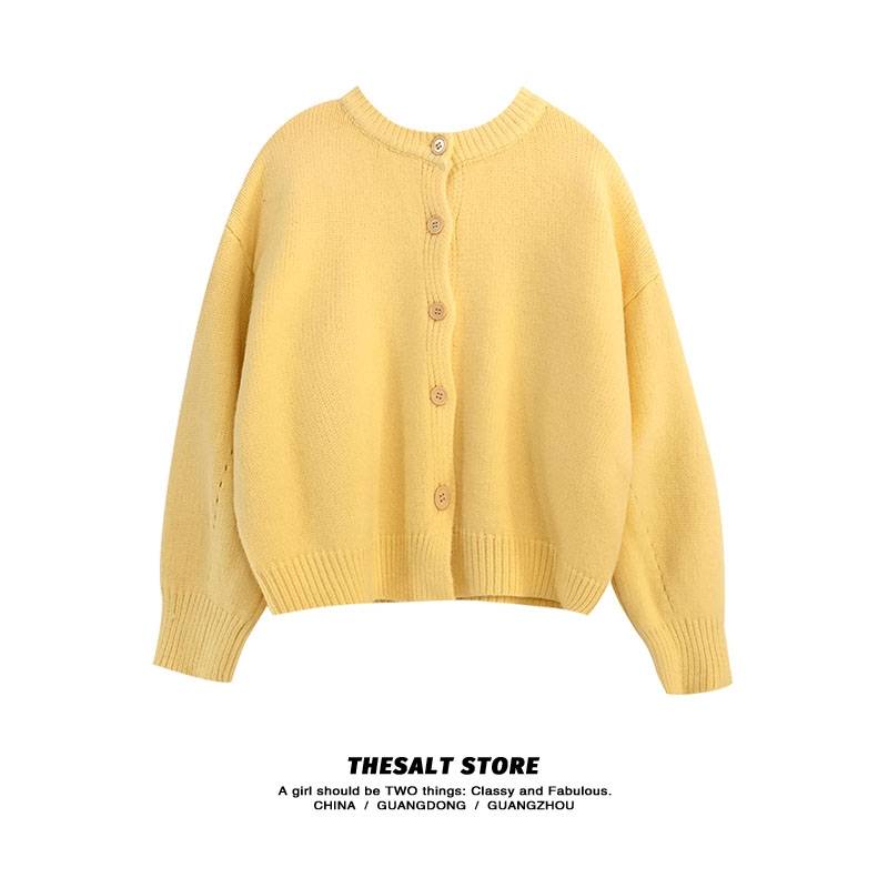 ins宽松清新圆领开衫毛衣2021年秋冬新款加厚女装慵懒风外套外穿