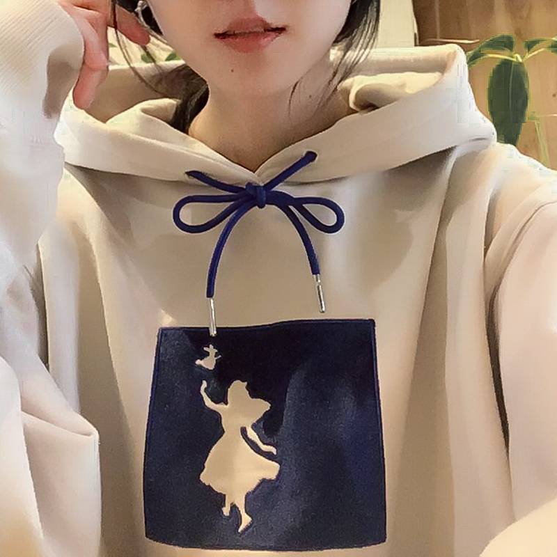 包邮鸢独家定制小众卡通爱丽丝印花丝绒刺绣加绒连帽卫衣女秋冬 100.00 已售:0件