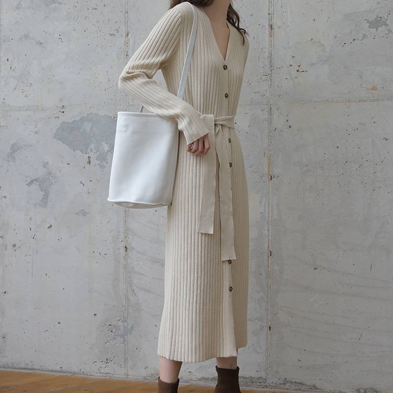 包邮法式系带开衫气质针织连衣裙女冬装2018新款打底长款毛衣裙 150.00 已售:0件