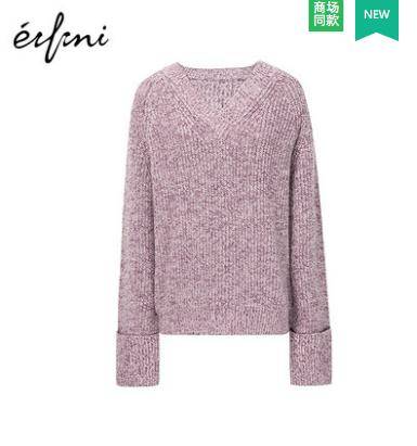 伊芙丽2018秋装新款韩版英伦风羊毛打底长袖宽松V领针织衫女