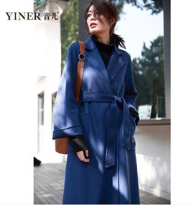 音儿2018冬新款中长款水波纹纯羊毛双面呢大衣女