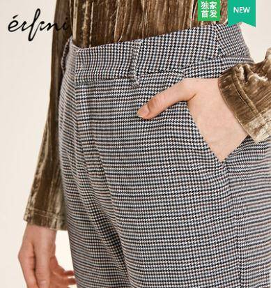 伊芙丽2018冬装新款韩版裤子女修身灰色直筒裤千鸟格休闲裤女长裤