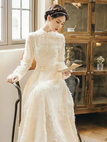 国风复古改良版旗袍连衣裙长袖温柔仙女裙秋冬新款