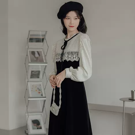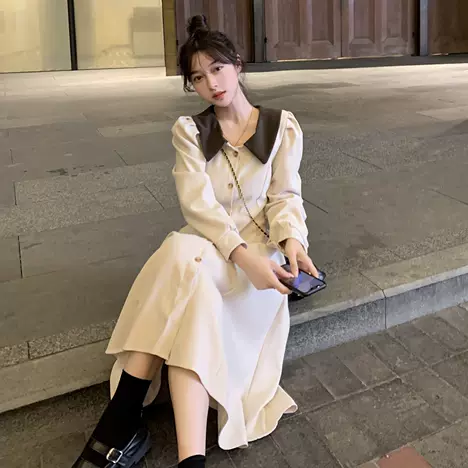 茶歇法式连衣裙2022新款秋季女装显瘦显气质
