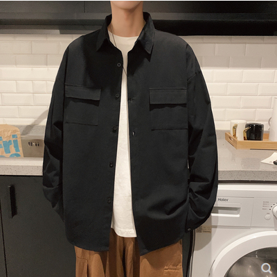 白衬衫男长袖韩版潮流宽松港风日系黑色秋冬季加绒加厚保暖衬衣