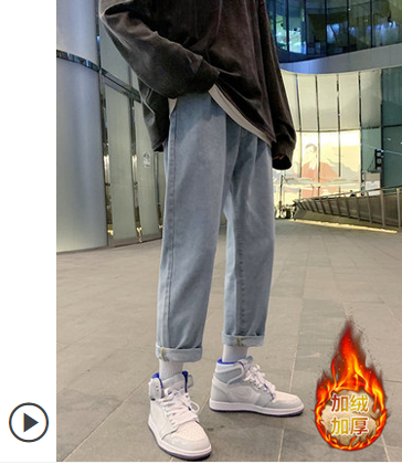 牛仔裤男直筒宽松潮牌休闲秋冬加绒韩版潮流百搭阔腿男生长裤子厚