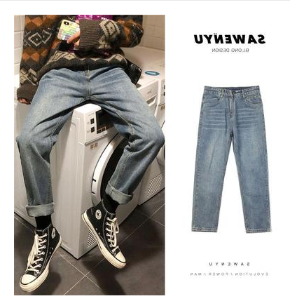 牛仔裤男修身小脚潮牌百搭ins秋冬韩版潮流休闲宽松直筒复古裤子