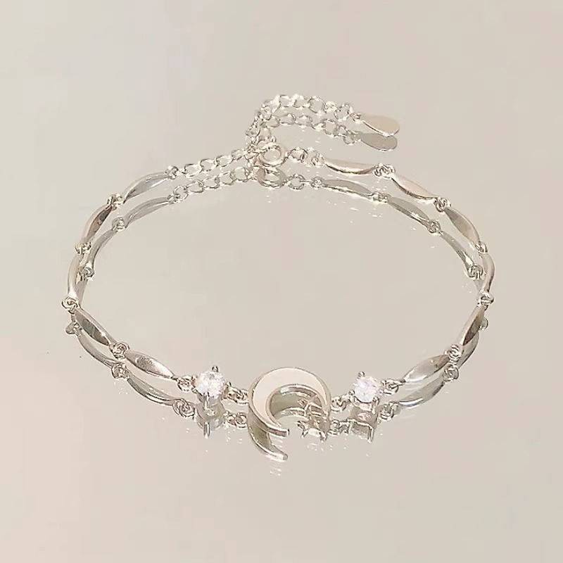 简约星星月亮手链s925纯银手饰ins韩版个性女款星月手饰清新饰品