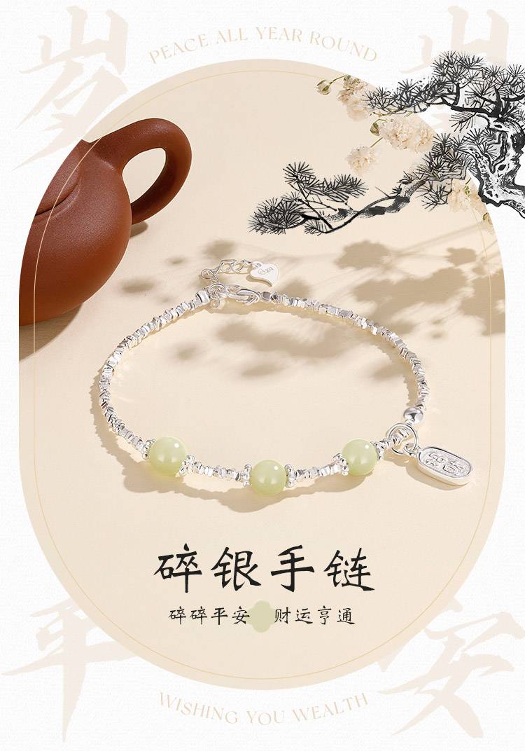 新中式国风轻奢足银999小众情侣百搭手链