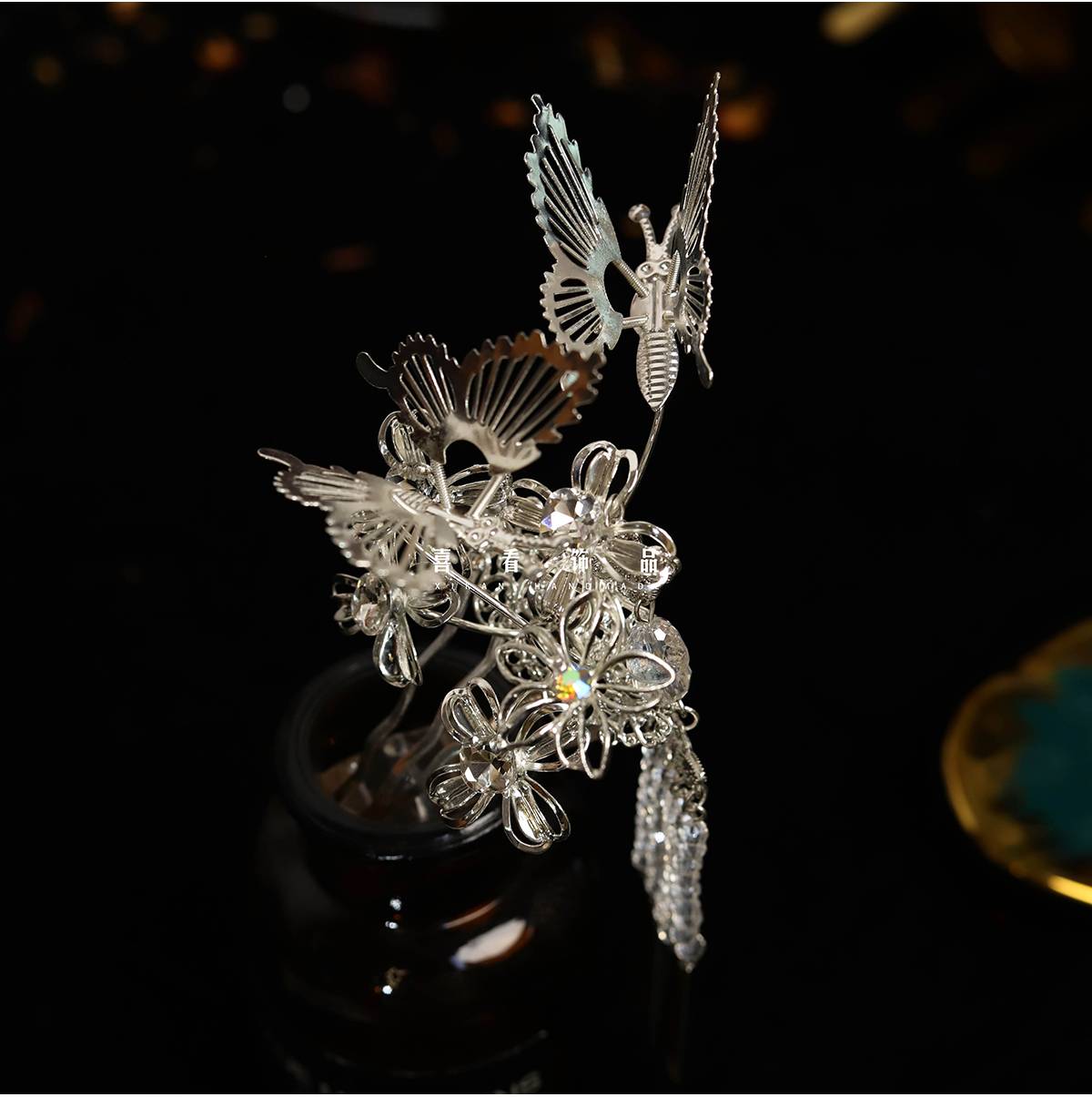 新娘头饰个性银色金属蝴蝶新中式秀禾配饰龙凤冠古装汉服盘发饰品