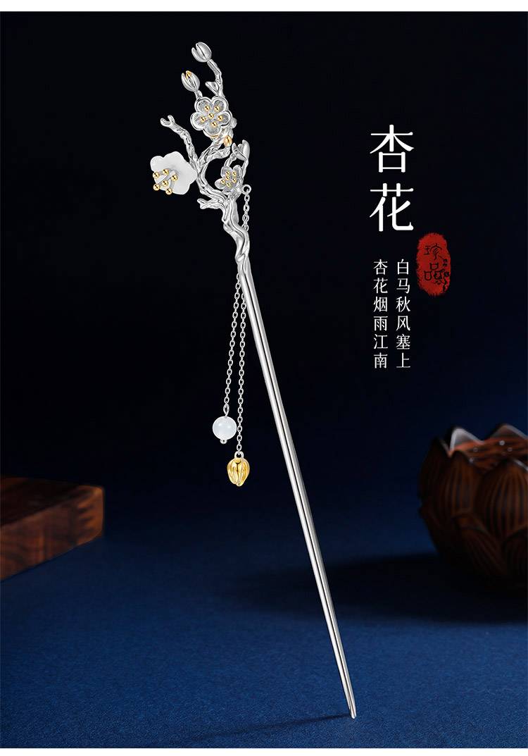纯银十二花神银发簪女步摇玉簪子古风新中式发钗国风礼物送女朋友