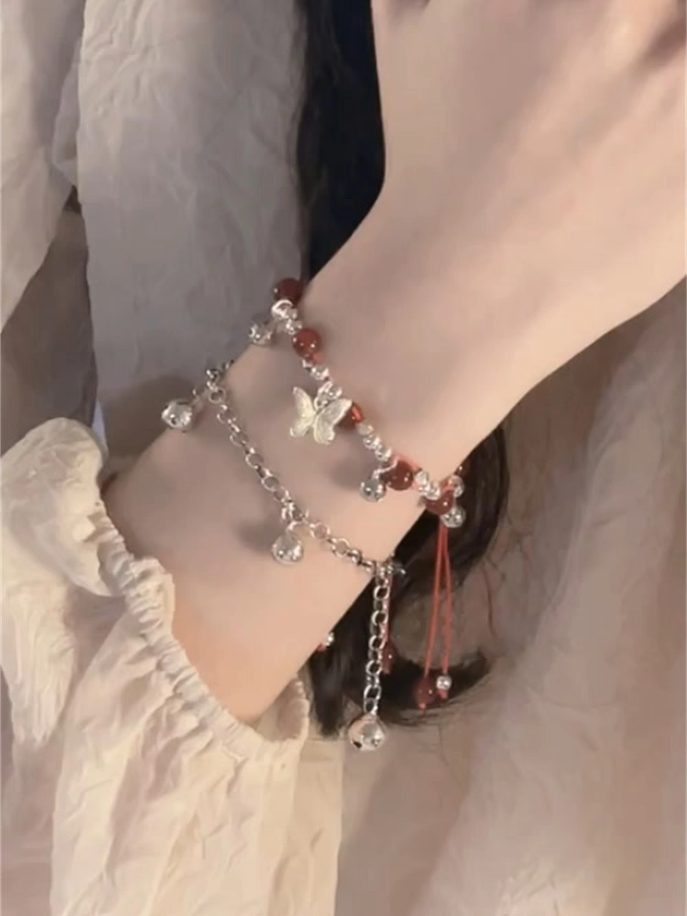 YFEIFEIE编织铃铛蝴蝶手链女2024年新款爆款小众轻奢红绳手绳手串