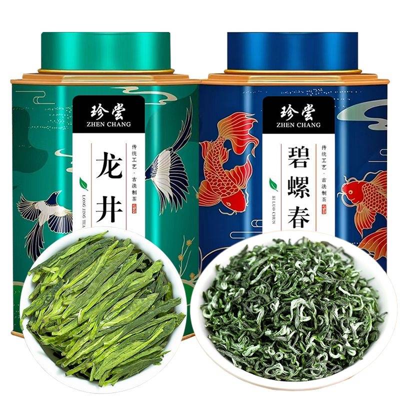 正宗杭州龙井茶叶明前碧螺春绿茶新茶春茶浓香型散装500g礼盒罐装