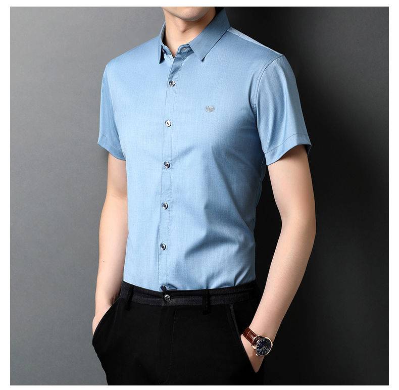 夏季桑蚕丝短袖衬衫男2020新款韩版真丝上衣休闲纯色薄衬衣