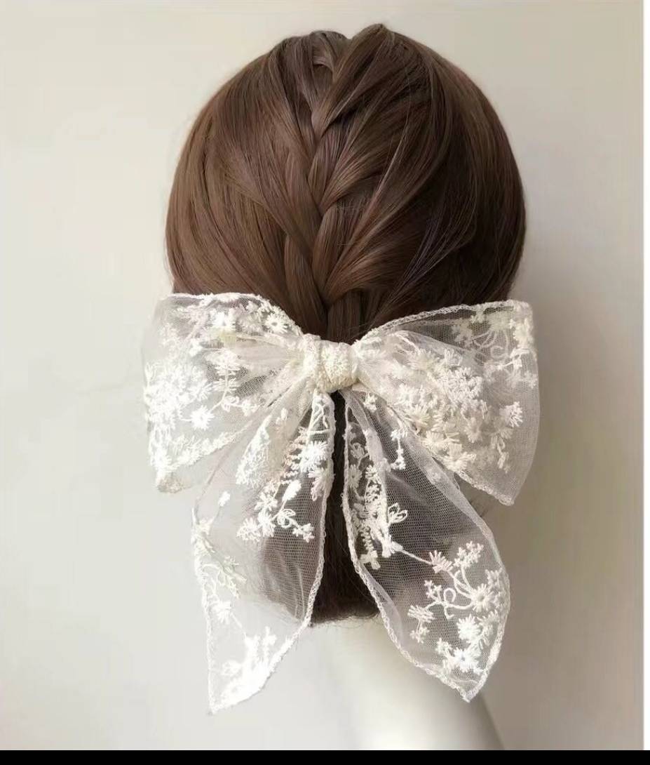 白色蕾丝大蝴蝶结发夹发饰仙女森系超仙夹子网纱发卡黑色刺绣发绳