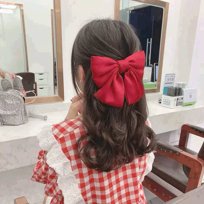 网红新款酒红蝴蝶结发夹后脑勺夏季头饰顶夹大号飘带发卡头绳发饰