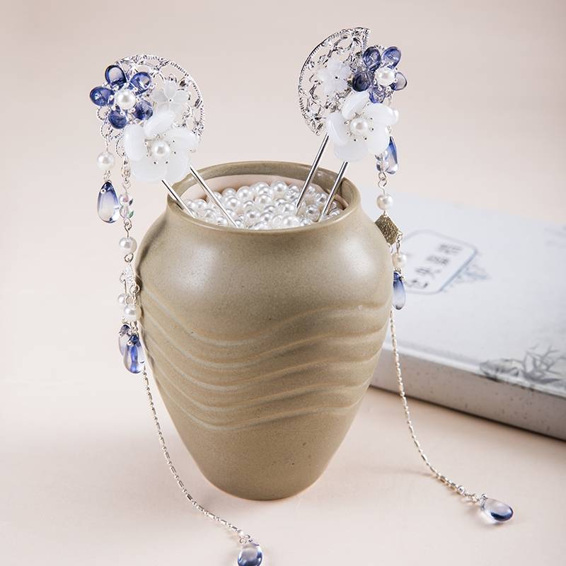【玉扇】汉服头饰发夹发簪流苏步摇复古边夹少女花朵对夹古装发饰