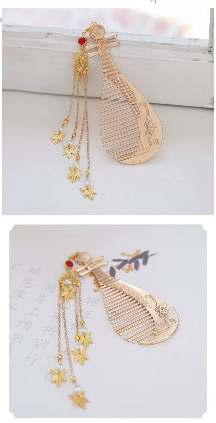 明制发梳古典配饰汉服头饰琵琶梳子古风步摇流苏发钗唐风发簪饰品