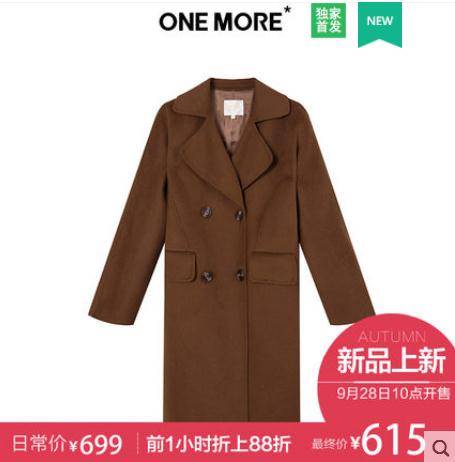 文墨冬装新品简约胸针装饰毛呢大衣女纯色中长款外套