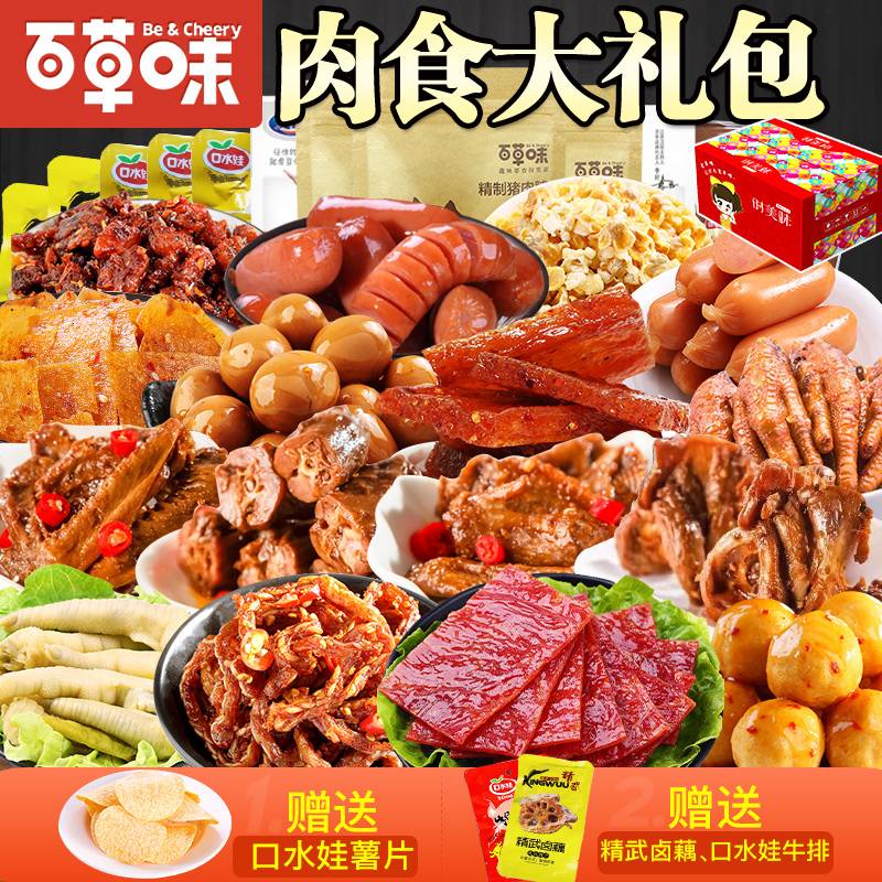 百草味肉类零食大礼包整箱网红食品猪肉脯肉干肉食休闲小吃美食店包邮