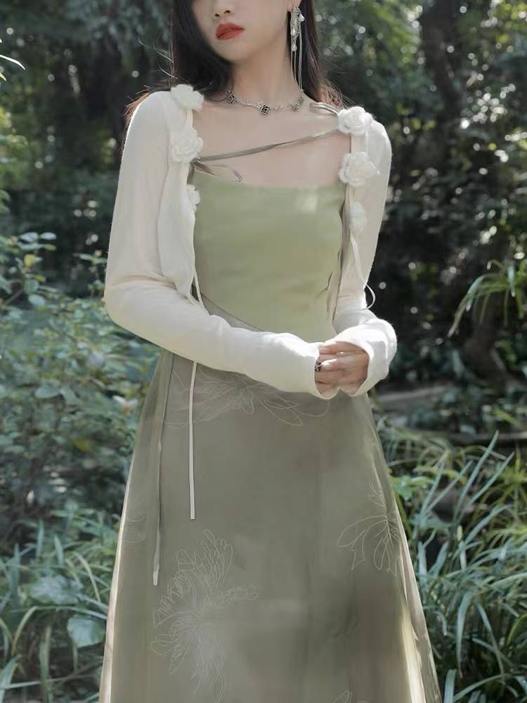 古着vintage裙吊带小众刺绣赫本风连衣裙可甜可盐裙子