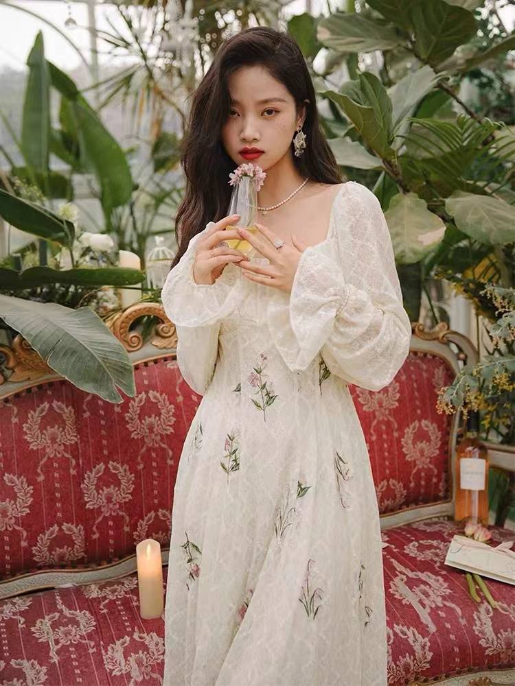 《波尔多夜未眠》法式少女修身仙气度假风连衣裙