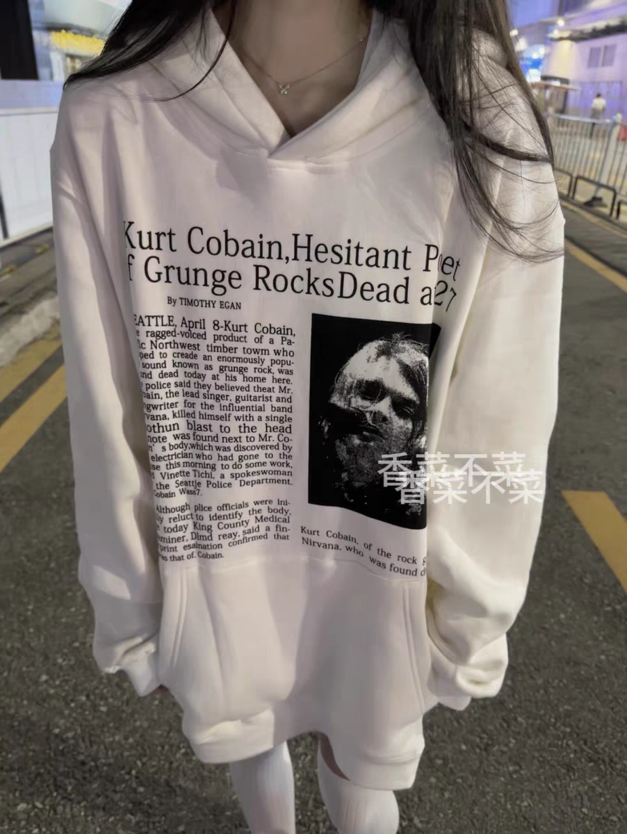 美式复古涅盘柯本人像标语连帽卫衣情侣秋冬简约vibe风休闲帽衫潮