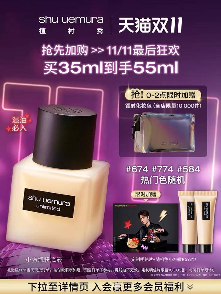 【双11狂欢】植村秀新品小方瓶羽纱持妆粉底液控油遮瑕抗氧化持色