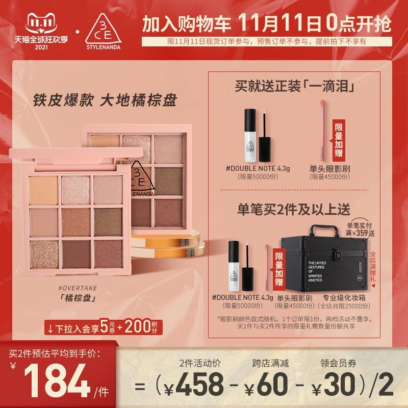【双11热卖】3CE九宫格哑光眼影橘棕盘奶茶色芋泥盘SOMEDEF黄油盘