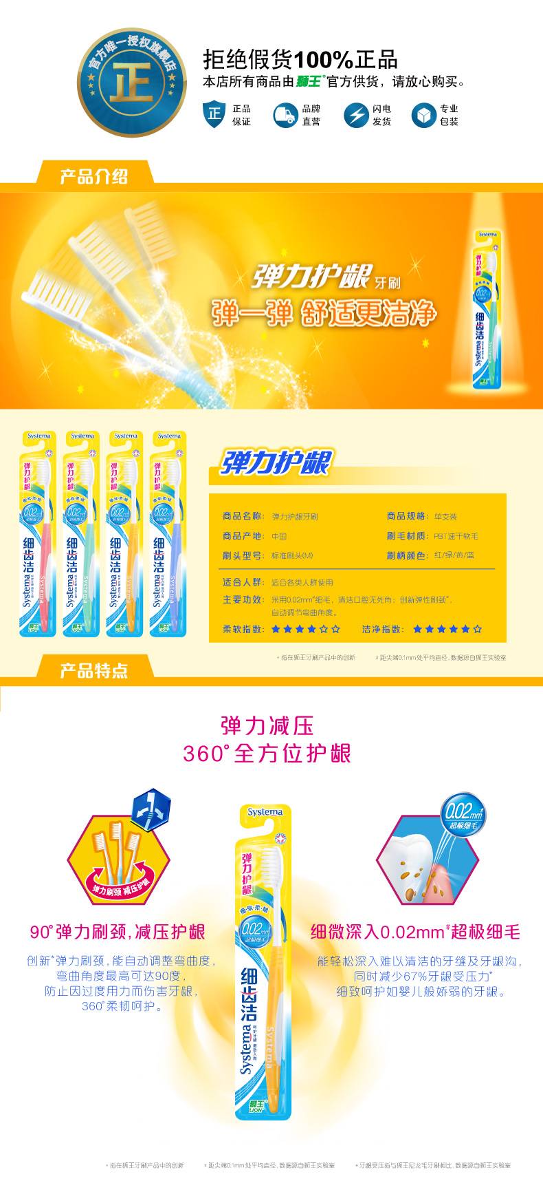LION狮王牙刷细齿洁弹力护龈牙刷10支装 软毛细毛成人牙刷家庭装