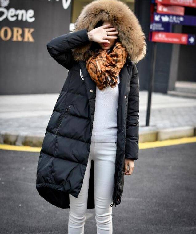胖妹妹过膝中长款羽绒服女加肥加大码韩版冬装200斤貉子毛领加厚