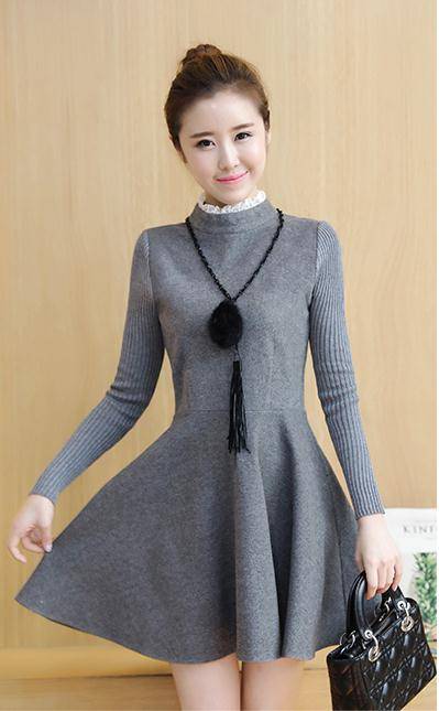 2016秋季新款女装休闲长袖修身连衣裙