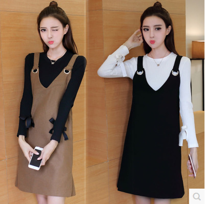 大码女装毛呢吊带连衣裙+打底针织衫两件套加肥加大秋冬显瘦胖mm