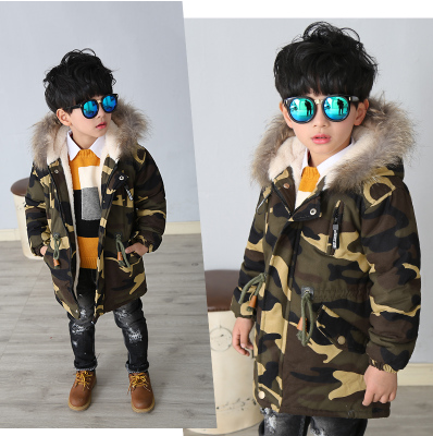 童装男童冬装棉衣加厚中长款大衣儿童迷彩棉服潮宝宝加绒毛领外套