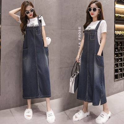 200斤女装大码牛仔背带裙显瘦休闲百搭胖妹妹宽松中长款连衣裙夏