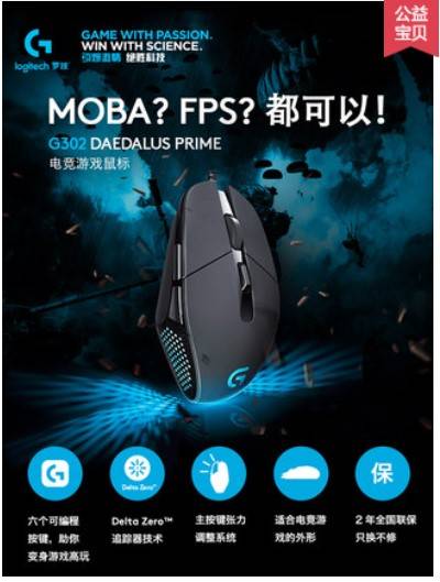 罗技G302有线电竞游戏鼠标绝地求生/LOL/吃鸡鼠标宏台式