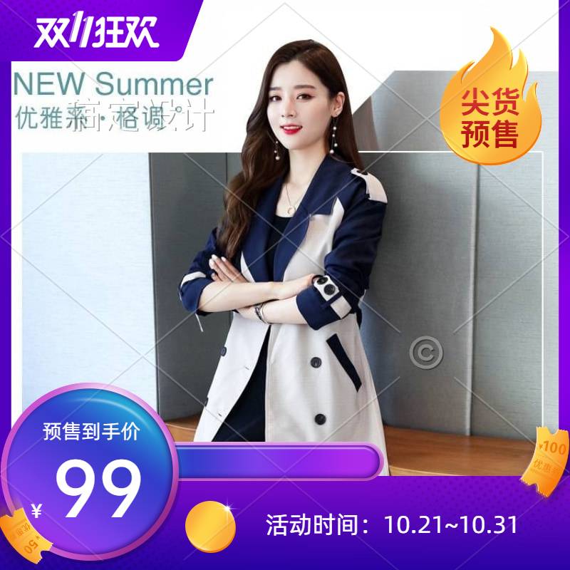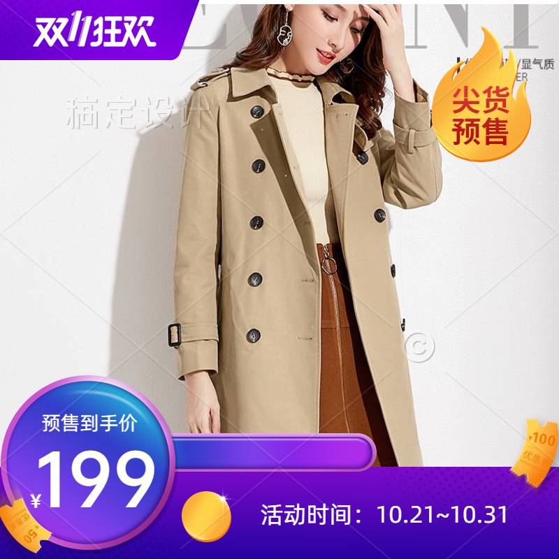 2019秋季新款品牌女装英伦气质纯色长袖西装领双排扣女式风衣外套
