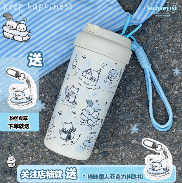 原创雪人猫咪陶瓷内胆不锈钢保温杯吸管大容量高颜值学生便携水杯 50.00 已售:11件