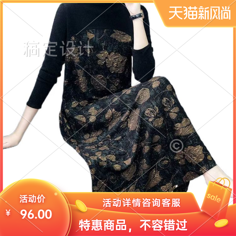大码女装胖mm遮肚子显瘦洋气减龄时尚妈妈连衣裙
